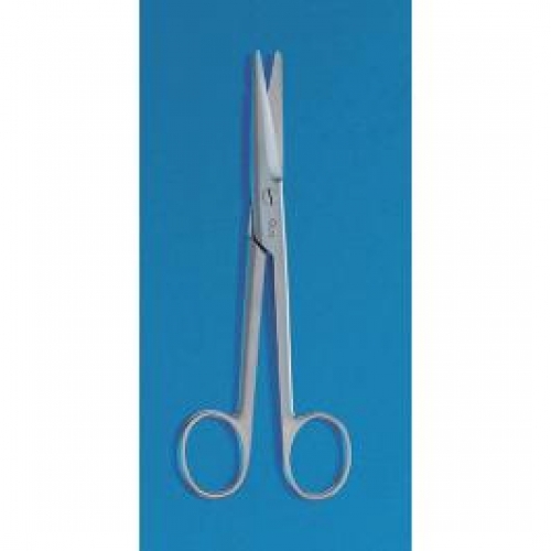 Heavy-duty surgical sissors with narrowed but blunt pointed blades which are straight .