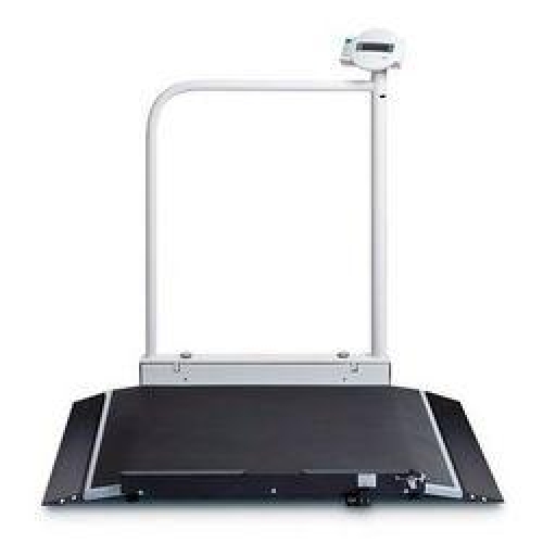 Stable, functional and mobile: thanks to its large platform and sturdy handrail, the seca 676 is extremely versatile. Patients can be weighed while sitting in a wheelchair or on a chair. The handrail provides valuable support for people who are frail or have difficulty walking. Its high load capacity makes the seca 676 ideal for weighing very heavy patients. After use the scale can be folded together to save space. The sturdy locking device between rail and platform ensures that the seca 676 stands safely even when folded. The handrail also serves as handle when the scale is folded, allowing the scale to be moved around or stowed away effortlessly and quickly on its transport castors. Weighing is simple and user-friendly with the clearly designed, operable display at hip level, additional functions of TARE, Auto-HOLD, BMI and the SEND key to transmit measurements wirelessly to a seca digital printer with wireless reception or the PC.